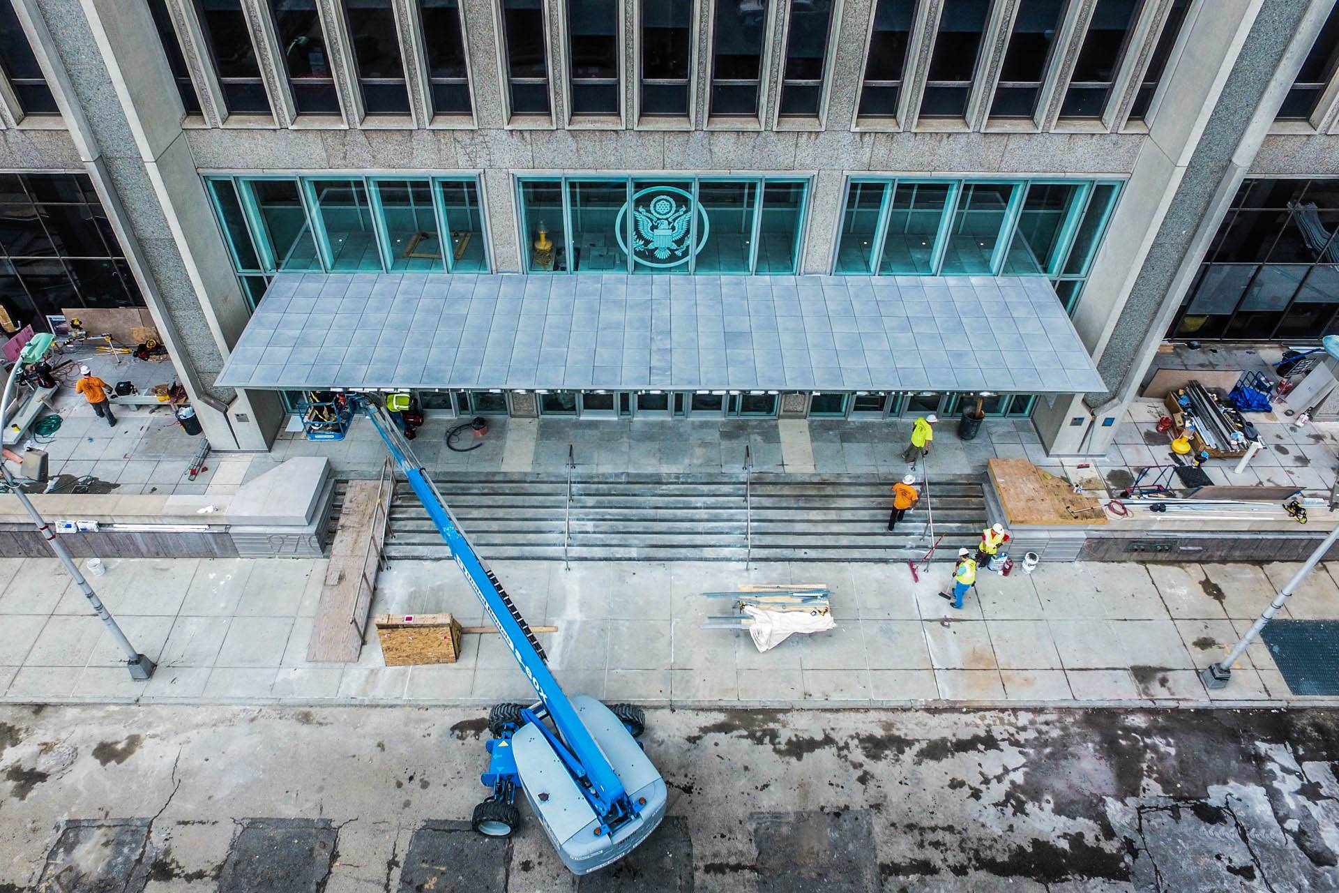 The Rodino Federal Office Building houses several government agencies, including the Department of Immigration’s Regional Center, the General Services Administration, and the US Attorney’s Office. Key components of this complex contract include security/anti-terrorism force protection upgrades, HVAC energy improvements, asbestos abatement, and interior renovations. DCM provided the design-build services to expand the primary vestibule entrance with a two-story curtain wall and internal blast resistant barrier. DCM also redesigned the first floor HVAC system with 27 distinct VAV zones using a reset control strategy that not only improved space comfort, but also reduced energy consumption. Received Merit in Construction Award by ABC New Jersey Chapter and a first-place national Excellence in Construction® Eagle Award from Associated Builders and Contractors (ABC).
