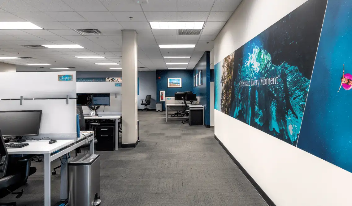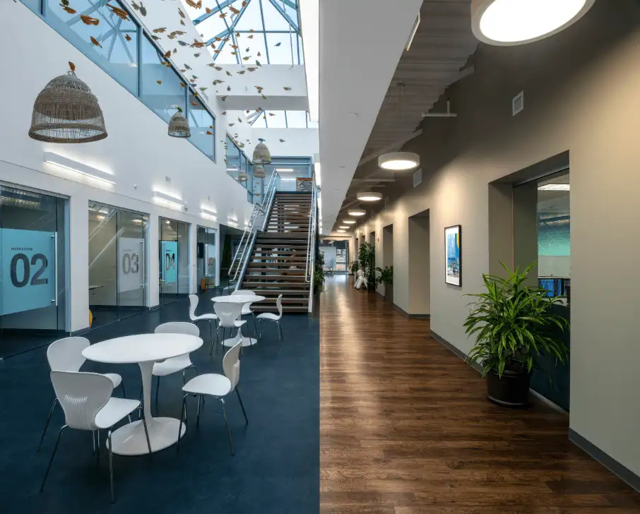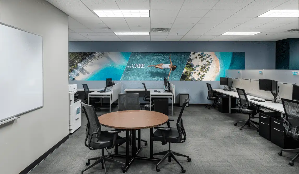 DCM Architecture & Engineering led the interior renovation of Apple Leisure Group’s U.S. headquarters with a focus on aligning the workspace with the company’s global brand and hospitality-driven ethos. As the leader in all-inclusive beach resorts across the Americas, ALG sought a workspace that would reflect its identity, inspire its team, and bring the warmth of its resort portfolio into a professional environment.